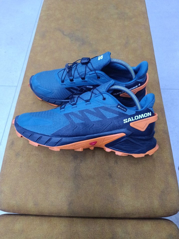 Salomon erkek spor ayakkabısı, mavi ve turuncu renklerde, renkli baskılı tasarım ve cırt cırtlı kapanış ile sportif sokak stili için uygundur. ♂️