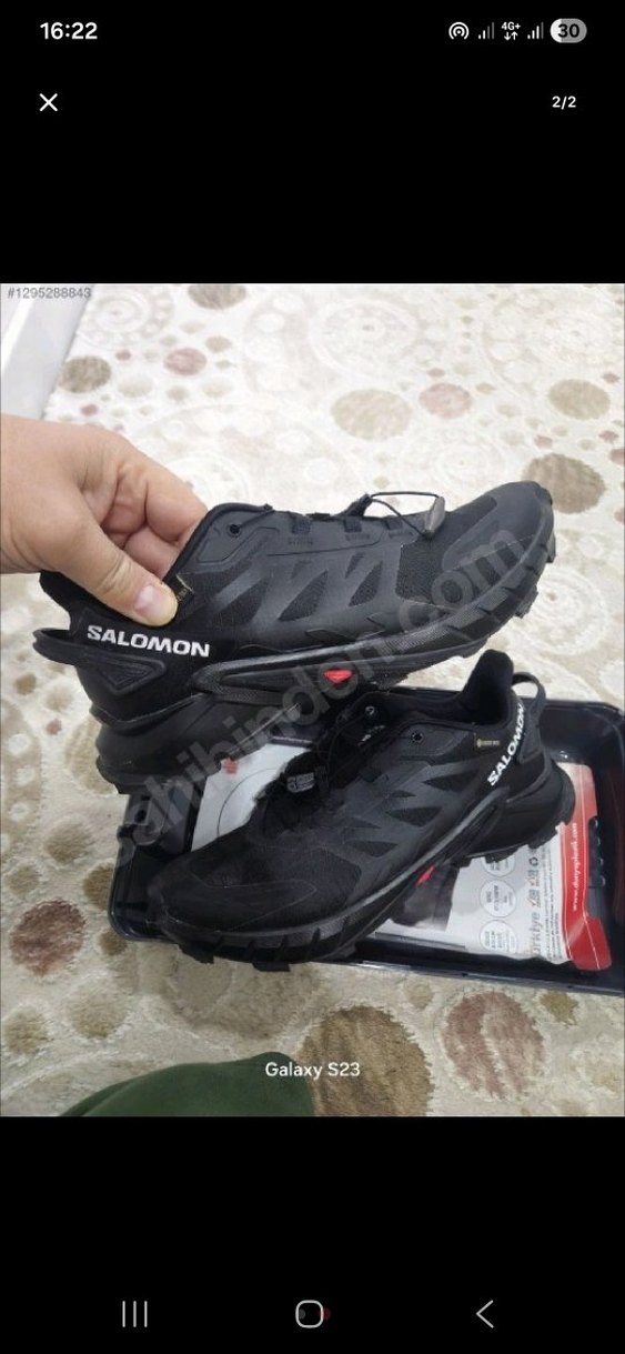 Dayanıklı kauçuk malzemeden üretilmiş, siyah renkli ve baskılı Salomon erkek spor outdoor ayakkabısı. Cırt cırtlı kapanışa sahiptir. gore textir. Yurt dışından gelmiştir