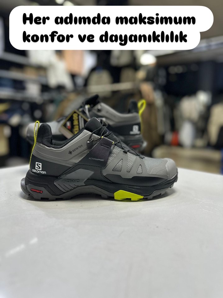 Salomon’un en sevilen modeli X Ultra 04’ü beğenilerinize sunuyoruz. Gore-tex kumaştan üretilmiştir; su ve hava geçirmez. Dişli taban yapısı sayesinde en zorlu arazi koşullarında ve şehrin her zemininde güvenle kullanabilirsiniz. Tabanı aşınmaya dayanıklıdır, usun süreler boyunca kullanabilirsiniz. Dört renk seçeneğimiz mevcut: Açık Antrasit, Haki, Siysh ve Haki/Siyah. Modellerimize dolabımızdan göz atabilirsiniz. Güncel stok durumu için yorumlarda buluşalım. Keyifli alışverişler dileriz