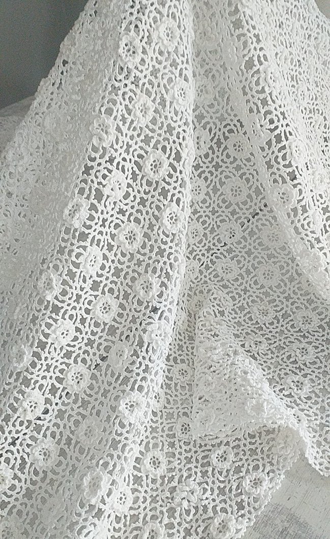 Bohem tarzda, çiçek işlemeli beyaz dantel kumaş. İnce detaylarıyla el işçiliği hissi verir.