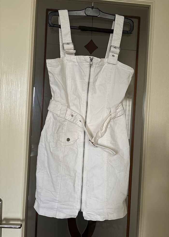 Salopet 38 beden yurtdışı ürün bir kaç defa kullanıldı sadece etek kısmında minik bir leke var yıkanabilir