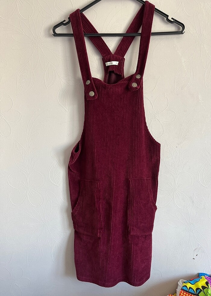 Kadın veya genç kızların kullanımına uygundur. Hiçbir sorunu yırtığı söküğü vs yoktur. Bordo renk orta boy dar kesim salopet.