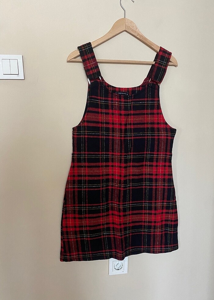 Ekose desenli salopet 2 saat kadar kullanıldı yandan fermuarlı yeniden farksız trendyol dan almıştım 38 beden 56 kiloda giymiştim
