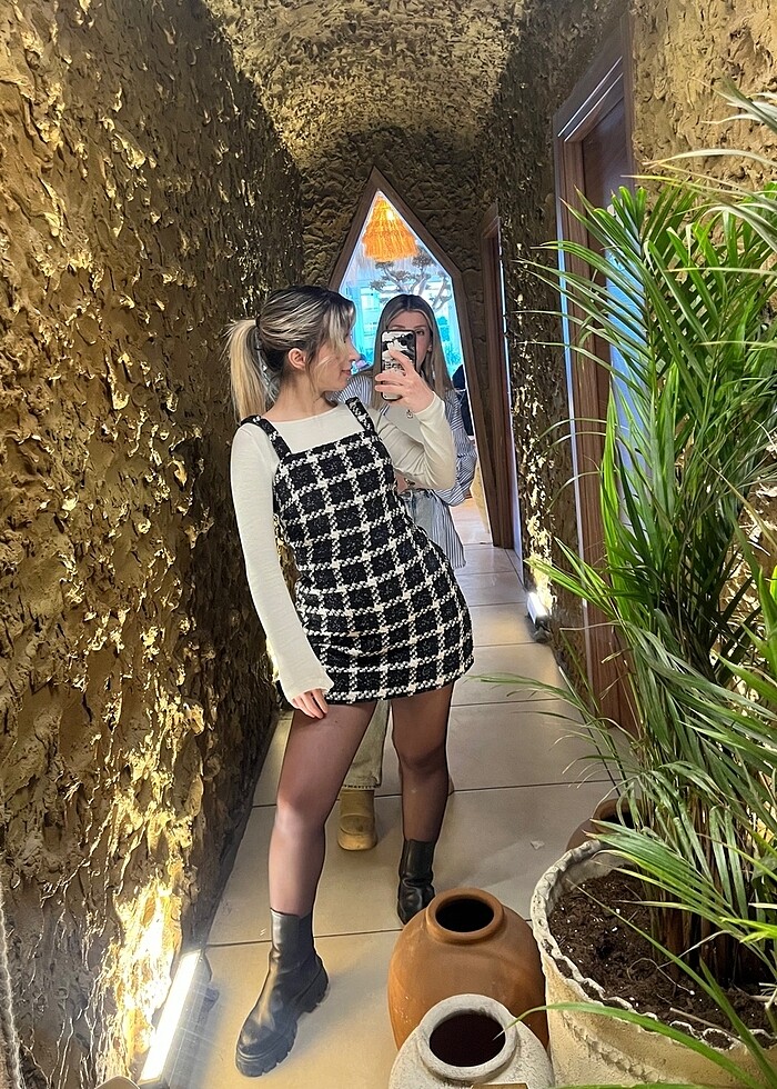 Önü düz arkası şortlu yan taraftan fermuarlı salopet elbise
