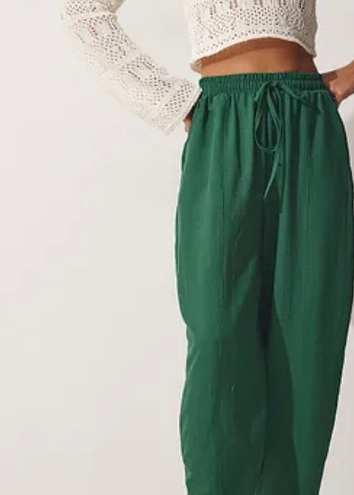 Şalvar pantolon paçaları lastikli kumaşı çok rahat ve çok güzel m bedee de oluyor
