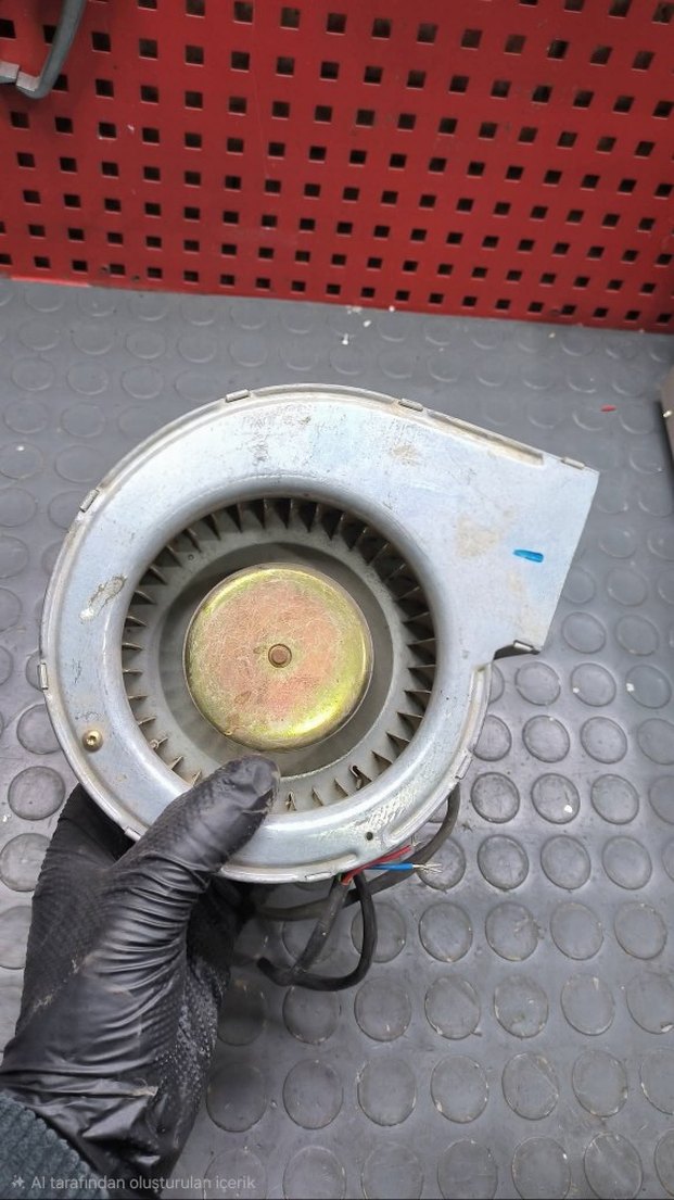 Gri renkte, metal kasalı ve kablolu dairesel fan tasarım, salyangoz FANDIR. METALDİR tümü. sessiz güçlü Bir üründür. çıkma üründür ömürlük tür. Salyangoz fan Alman malı 6/24 Volt metal kasa metal pervane çıkma üründür.