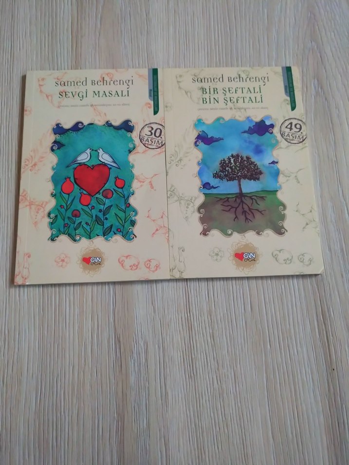 Samed Behrengi'nin 30 sayfalık "Sevgi Masalı" ve 49 sayfalık "Bin Şeftali" şiir kitaplarından oluşan set.