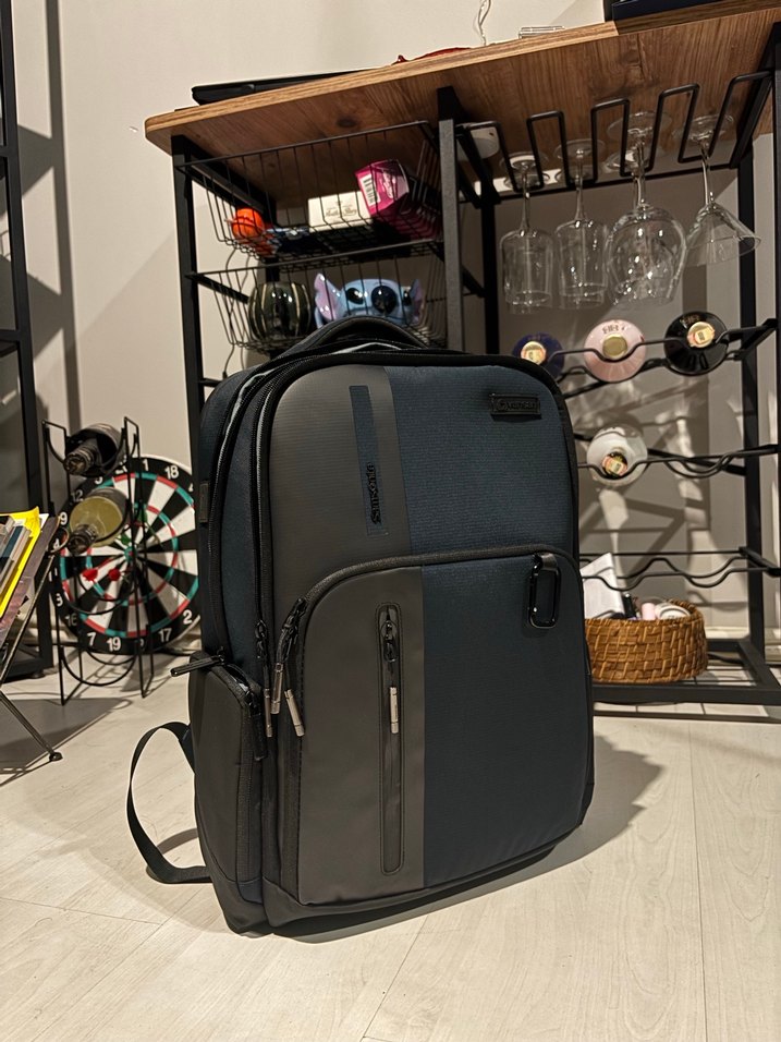 Kilitli kapanışlı, baskılı desenli koyu gri erkek sırt çantası, trend ve iş tarzına uygun. Hiç kullanılmadı sadece firma logosu bulunuyor resimlerden inceleyebilirsiniz