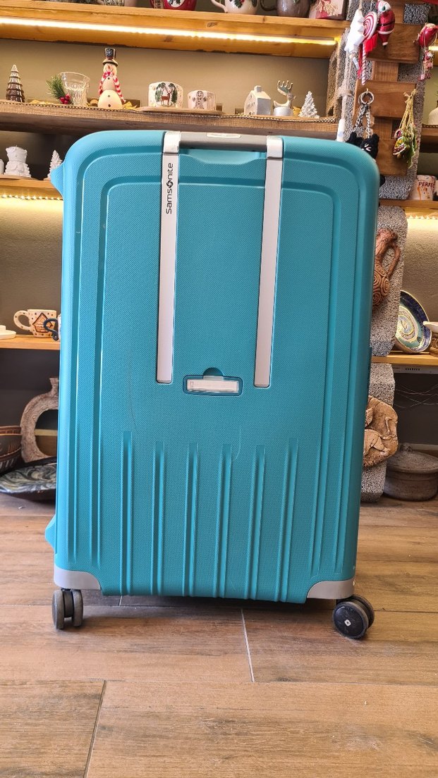 Samsonite s cure spinner 81 cm turkuaz kadın veverkek valiz. Düz ve desensiz tasarımı, kolay hareket için dört tekerleği bulunur.. sadece yurtdışından türkiyeye getirdim ondan sonra hiç kullanmadım
