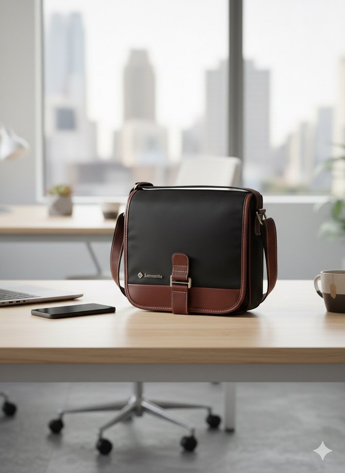 Kahverengi baskılı ve tokalı postacı çantası, klasik zarafeti çağdaş bir tarzla birleştirir. Ab yeni ayarındadır