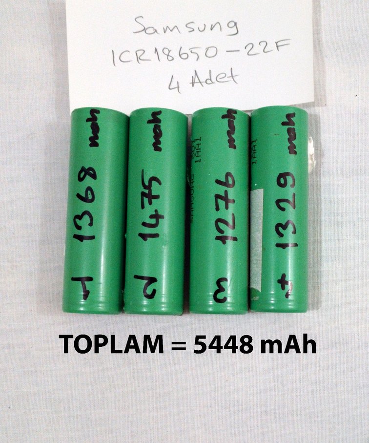 4 adet lityum pil. laptop bataryalarından çıkma Samsung ICR18650-22F pil. lii tokala lii600 ile test edilmiştir. kapasiteleri pillerin üzerine yazılmıştır. yazan fiyat toplam fiyattır.