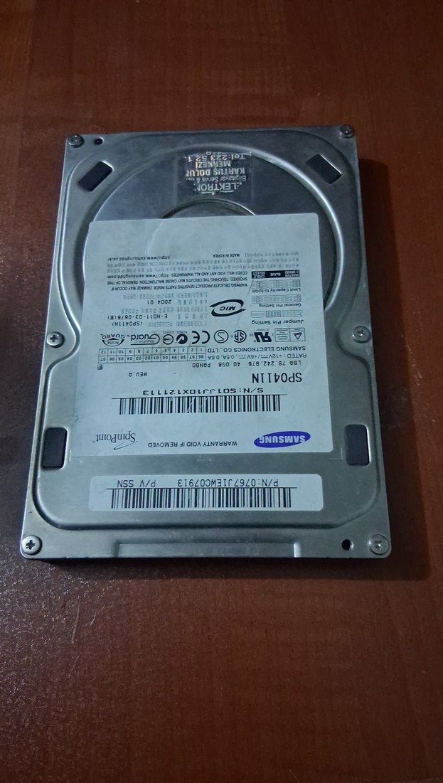 Samsung marka koyu kahverengi renkli 3.5 inç iç sabit disk. Model ve seri numaraları okunabilir. Masaüstü bilgisayarlar için uygundur.