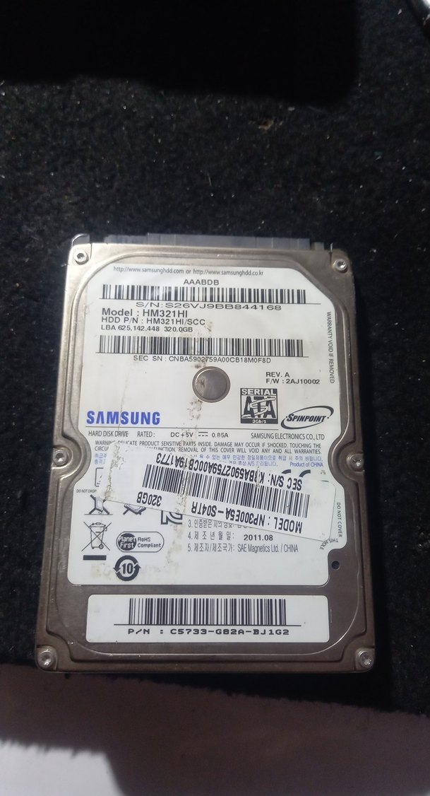 Samsung HM321HI model 320GB dahili sabit disk. Beyaz etikette teknik bilgiler ve seri numaraları yer alır. 2011 üretimi. Bilgisayar depolama için uygun.