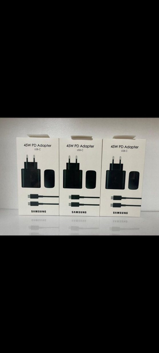 Samsung 45W USB-C hızlı şarj adaptörü siyah renkte. Kompakt tasarımıyla verimli güç sağlar. USB-C kablo dahildir. ⚡