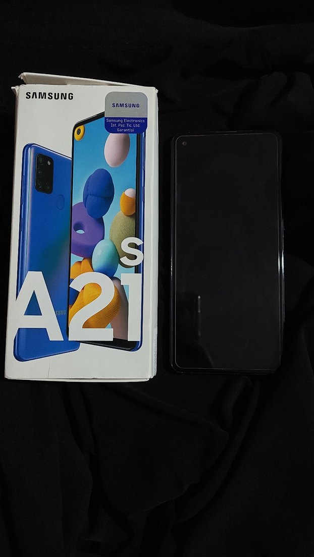 Samsung A21S mavi renkli, koyu ekranlı Android telefon, orijinal kutusuyla birlikte gelir. Samsung Galaxy A21s Satılıktır Temiz ve sorunsuz cihaz Batarya sağlığı gayet iyi, günü rahat çıkarıyor Ekran, kamera ve tüm tuşları problemsiz çalışıyor Kutusu mevcut Hiçbir donma/kasma sorunu yok Günlük kullanım için ideal, kamerası net, sosyal medya ve uygulamalar akıcı ✨ Uygun fiyata kaliteli Samsung deneyimi yaşamak isteyenler için çok güzel bir fırsat!