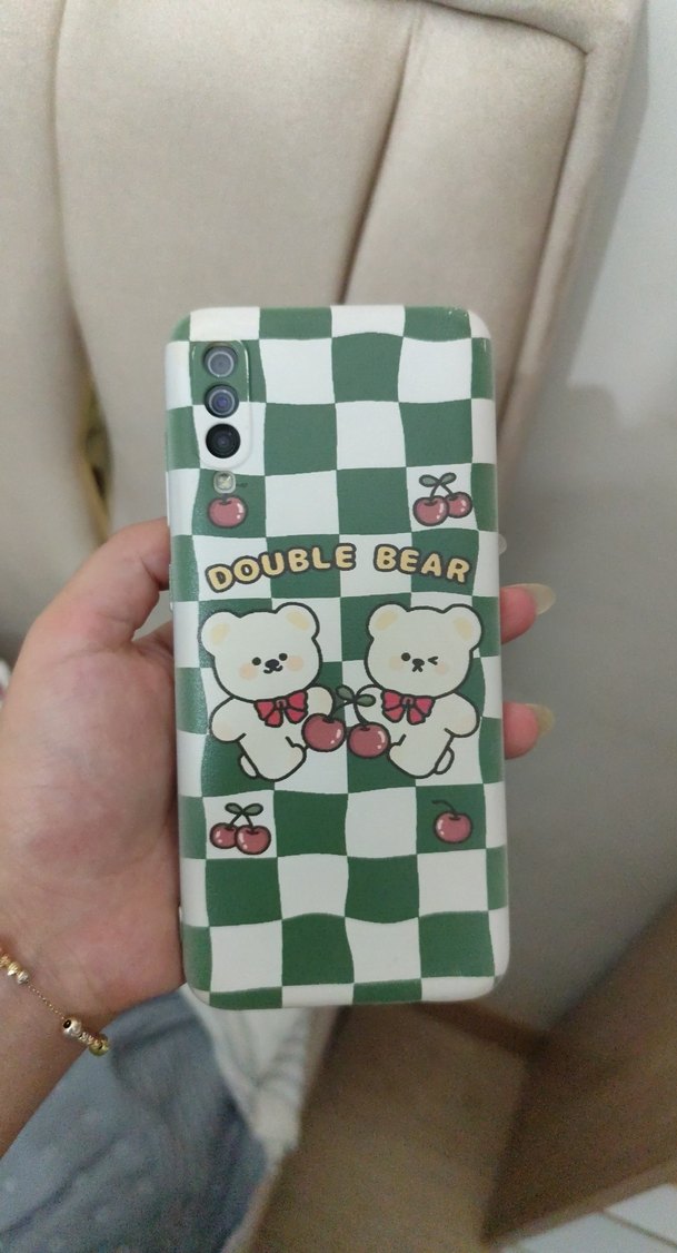 Samsung A70 Yeşil Kareli Ayıcık Desenli Telefon Kılıfı
