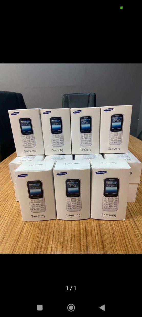 Samsung beyaz ve gri renklerde, temel telefon özelliklerine sahip basit tasarımlı bir cep telefonu.