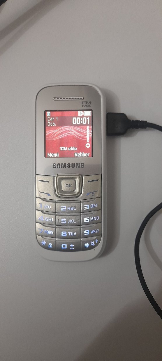 Küçük renkli ekran, fiziksel tuş takımı, FM radyo ve SIM kart yuvası bulunan beyaz ve gri Samsung temel telefon. Menü ve rehber Türkçe.Temiz kullanacağınız bir telefon. şarj aleti yok . tek sıkıntısı imail oldugundan fiyat son.