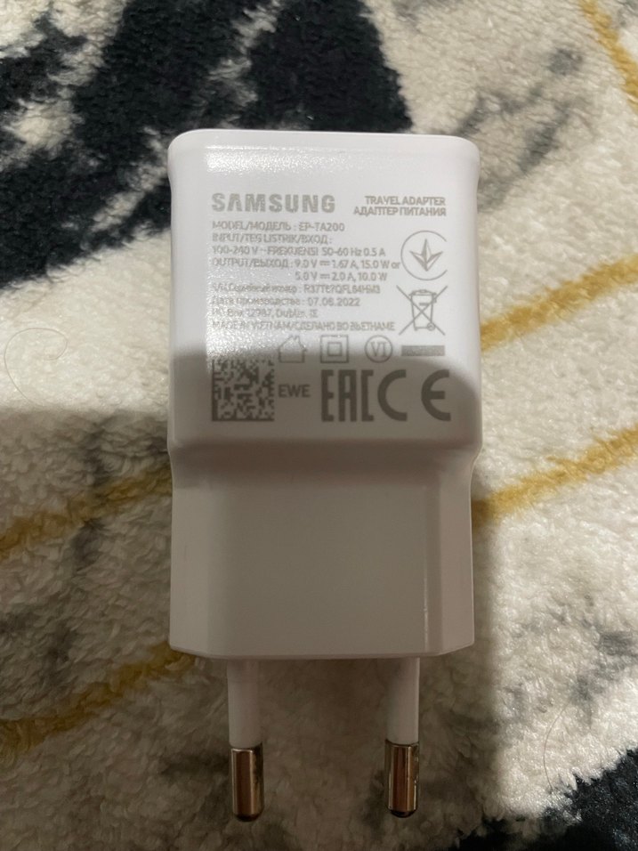Samsung marka beyaz telefon şarj adaptörü, Avrupa tip fiş ile seyahat adaptörü özellikli. Kompakt ve hafif tasarım. ⚡