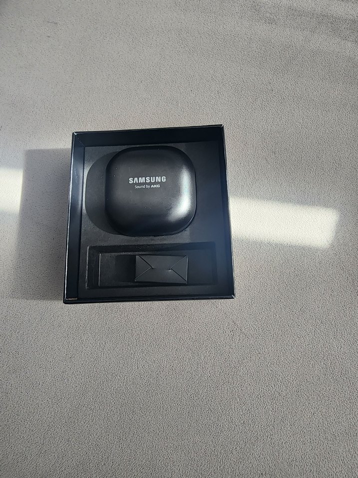 Samsung siyah kablosuz kulaklık, kompakt şarj kutusuyla kolay taşınabilirlik sağlar . temiz sorunsuz cok az kullanildi yeniden farksız.