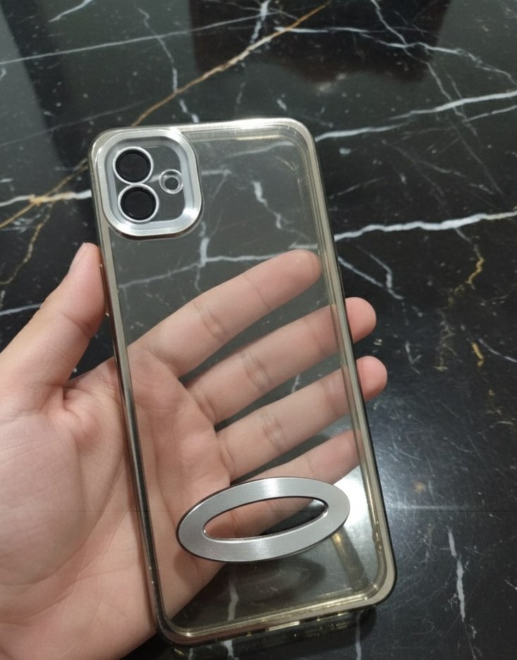 şeffaf renkte, parlak yüzeyli modern telefon kılıfıdır.