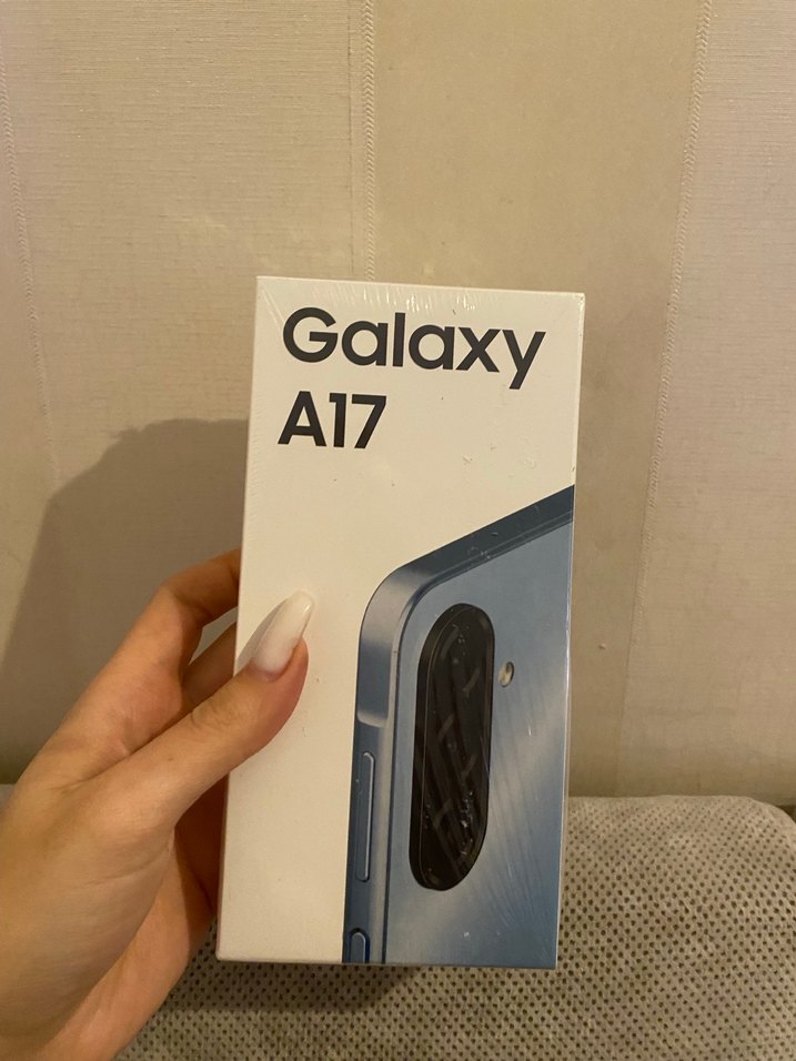 Samsung Galaxy A17 beyaz renkli, gri yan çerçeveli modern Android akıllı telefon.
