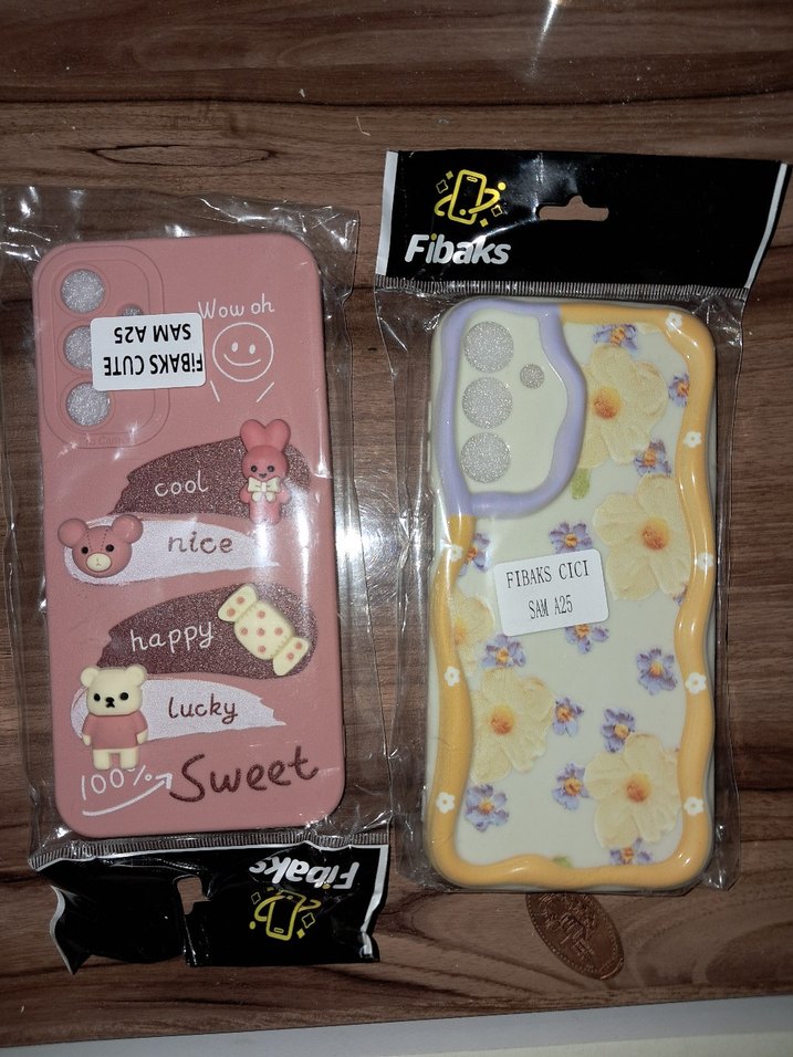 Parlak yüzeye sahip pastel pembe telefon kılıfı, street wear tarzında sevimli çizimler ve "cool", "nice", "happy", "lucky" yazıları içerir. (adet fiyatıdir)