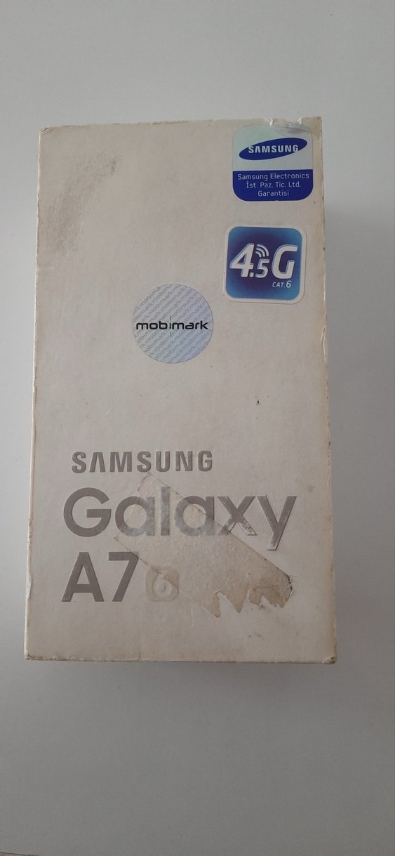 Samsung Galaxy A7 4.5G bağlantılı beyaz renkli Android akıllı telefon. Mobimark sertifikalı, canlı gri-beyaz tasarıma sahip.