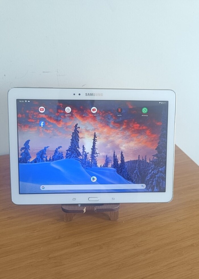 Samsung Galaxy Tab Pro SM-T520 10.1 Büyük Ekran 1.9 GHz işlemci 4 çekirdek 16 GB hafıza 64 GB hafıza kartı desteği var. Android sürümü 10 güncel tüm uygulamaları destekliyor.