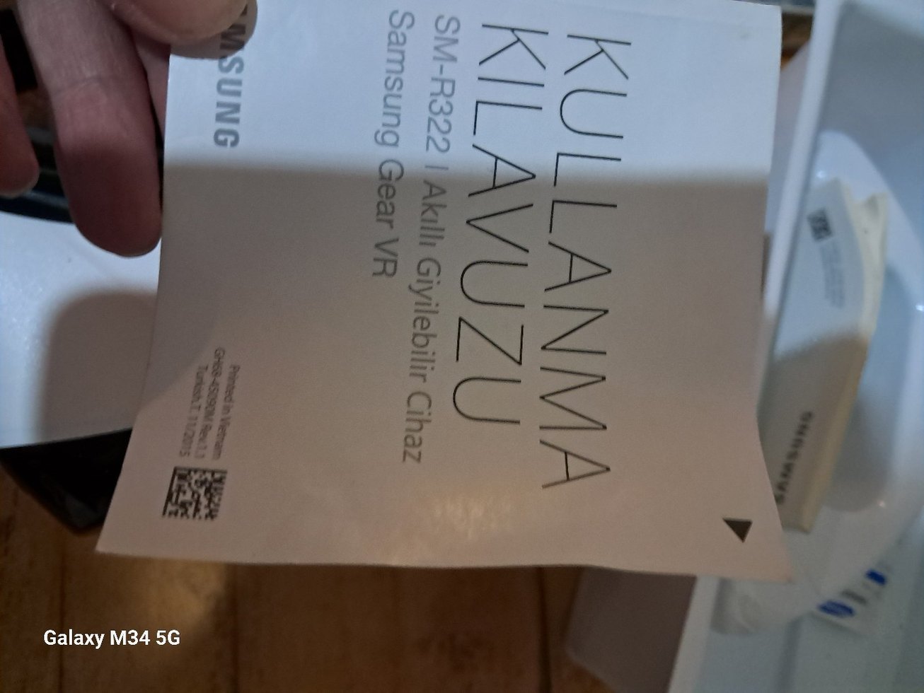 Samsung Gear VR SM-R322A akıllı giyilebilir cihaz için bej renkli kullanım kılavuzu.