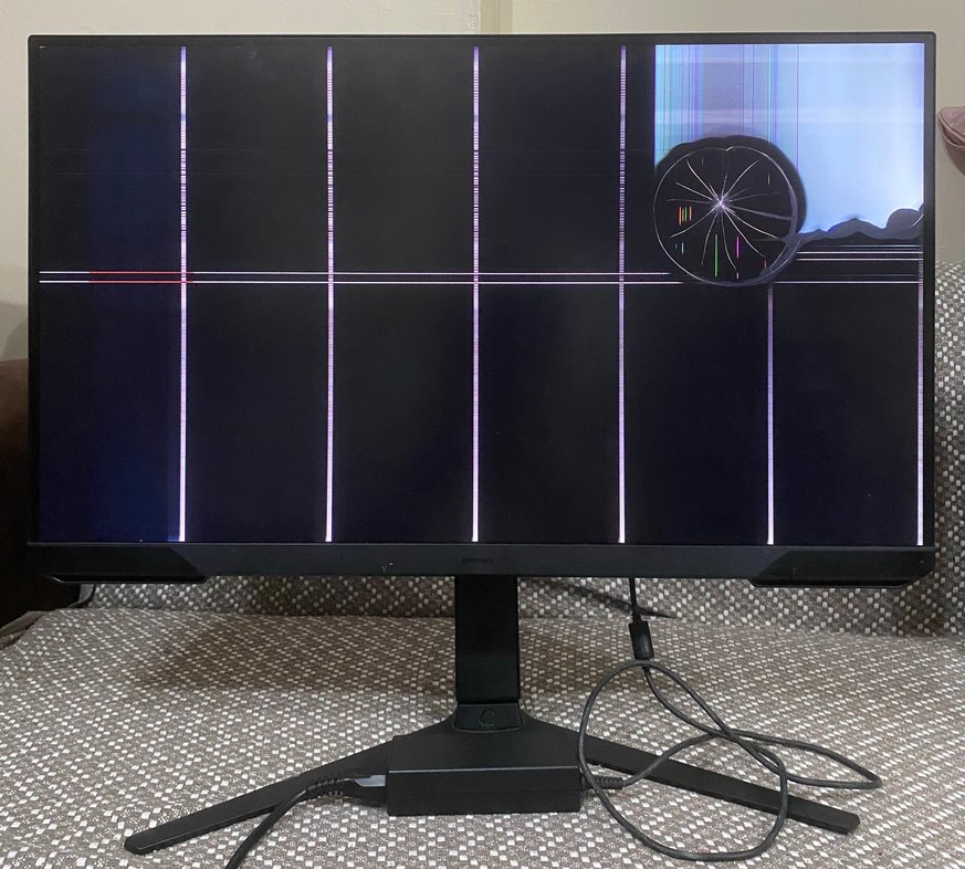 72 cm 27 inç monitör Ekranı çatlamış ve çizgiler oluşmuş siyah monitör. Ekran düzgün çalışmıyor. ⚠️ yedek parça niyetine satılık adaptörü yanında çeşitli girişleri olan bir cihaz iade kabul etmiyorum