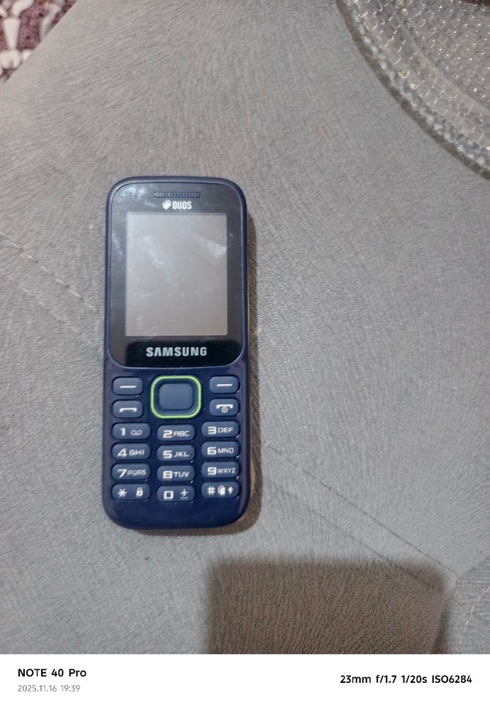 Küçük ekranlı ve fiziksel tuş takımına sahip koyu mavi Samsung klasik cep telefonu. Temel işlevlere ve kompakt tasarıma sahiptir. yeni alındı.sıfır kullanılmamıştır. Jelatin bile duruyor. #samsung #telefon #askertelefonu #dede