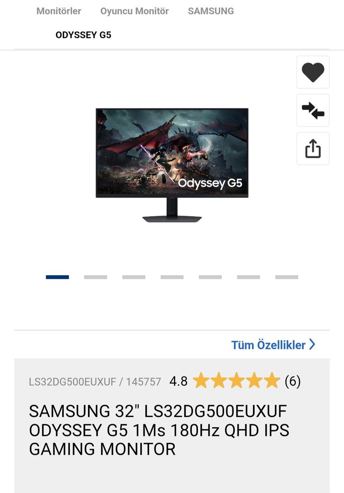 Samsung Odyssey G5 32 inç QHD IPS ekran, 1ms tepki süresi ve 180Hz yenileme hızıyla akıcı görüntüler sunar. ️2k quality