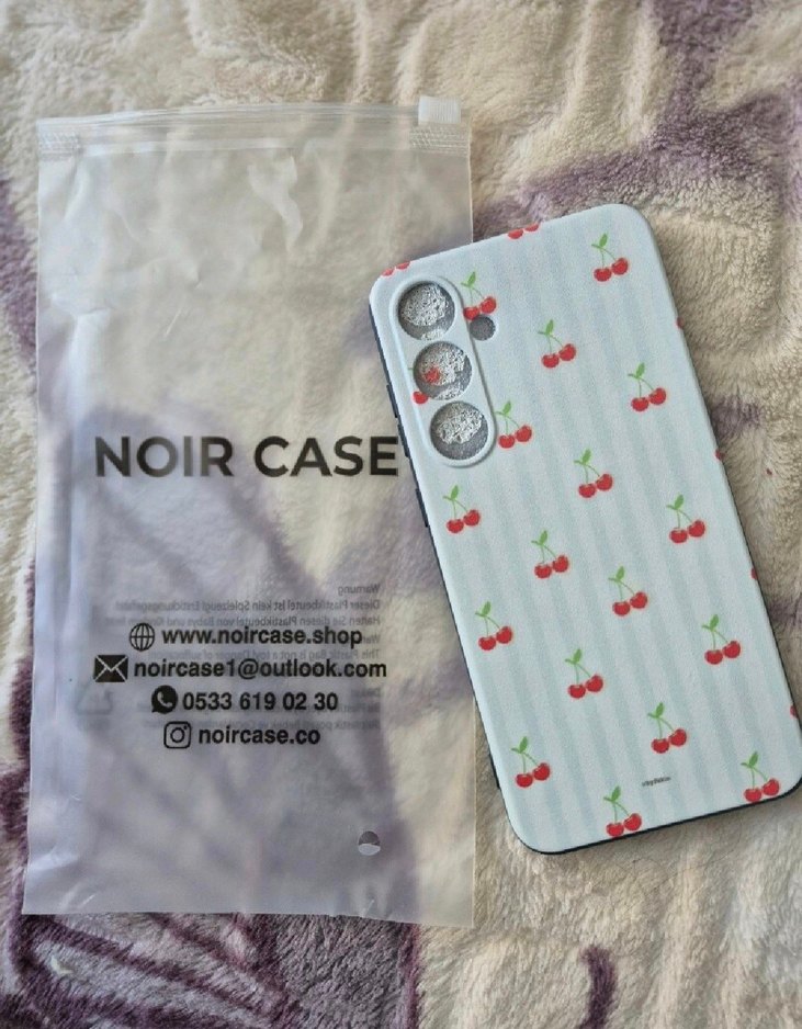Parlak beyaz yüzeye sahip, pastel kiraz desenli telefon kılıfı. Basit ve normcore tarzında, pürüzsüz bir dokunuş sunar. NOIR CASE ambalajıyla birlikte gelir. Kargom gelir gelmez kaldırdım hiç kullanılmadı..
