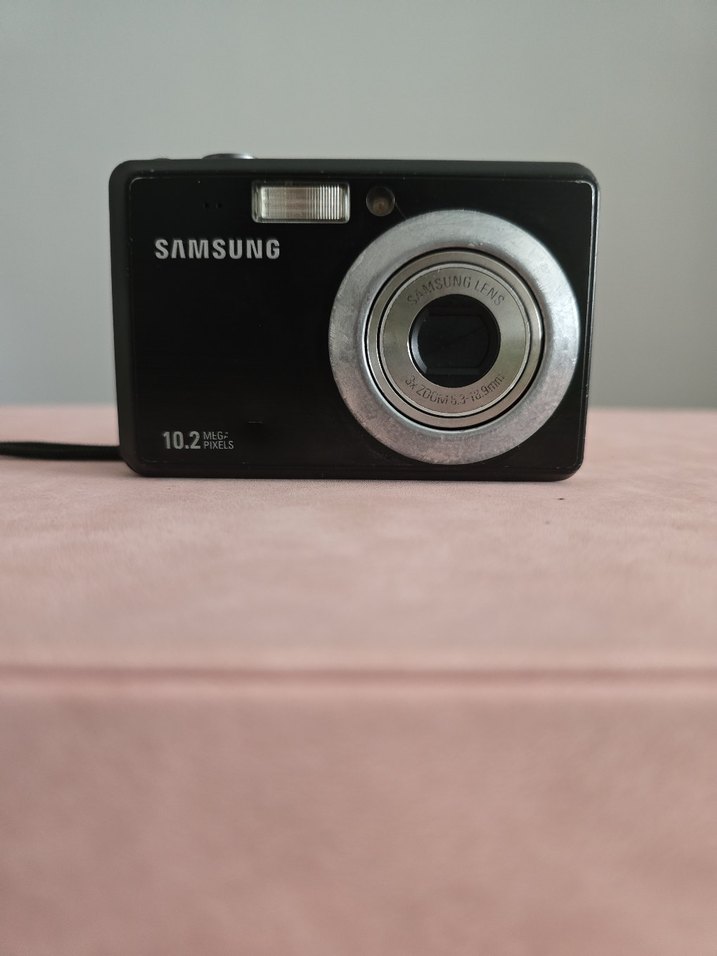 Samsung marka, 10.2 megapiksel sensörlü, siyah renkli kompakt dijital kamera. Sorunsuz calısıyor
