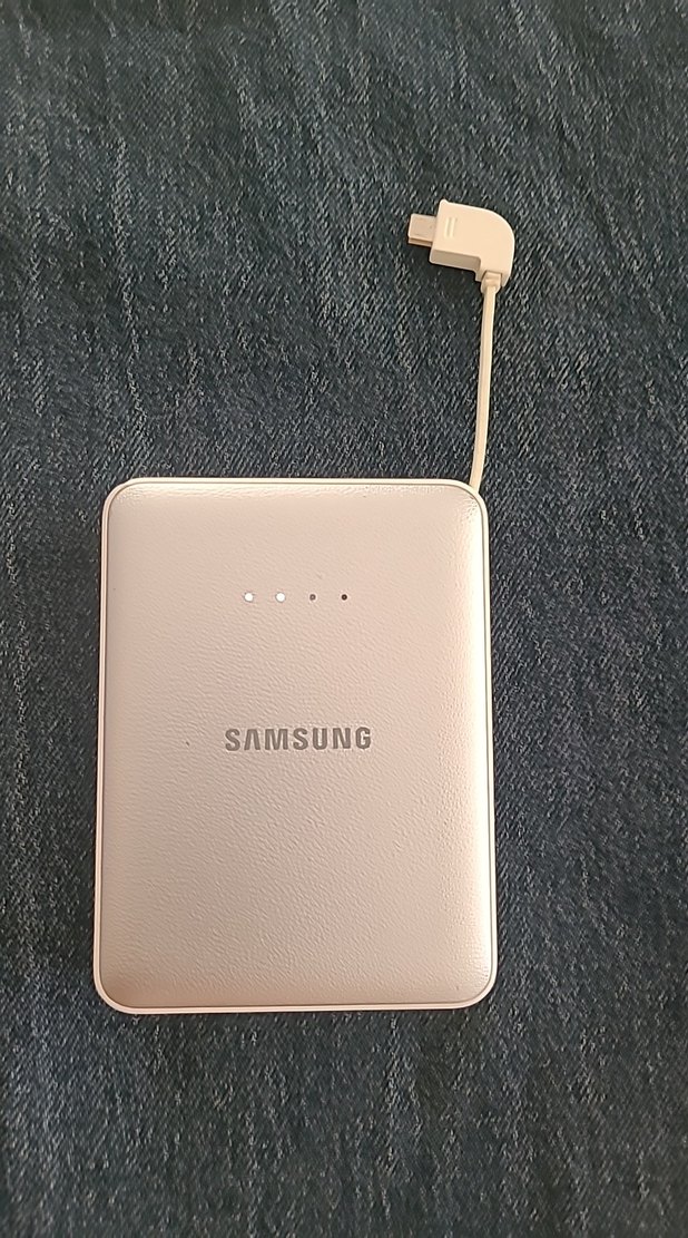 Samsung marka, dahili MicroUsb şarj kablosu ve pil durumu için LED göstergeleri olan taşınabilir şarj cihazı. Kompakt ve kullanışlı.