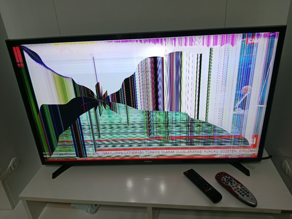 dış ekranda kırılma yok iç panel hasar görmüş ve bu şekilde oğlum kumanda firlatmisti biz yaptirmayla uğraşmak istemedik baska sorunu yok kumanda ile vereceğim internet özelliği ve smtart TV vardir