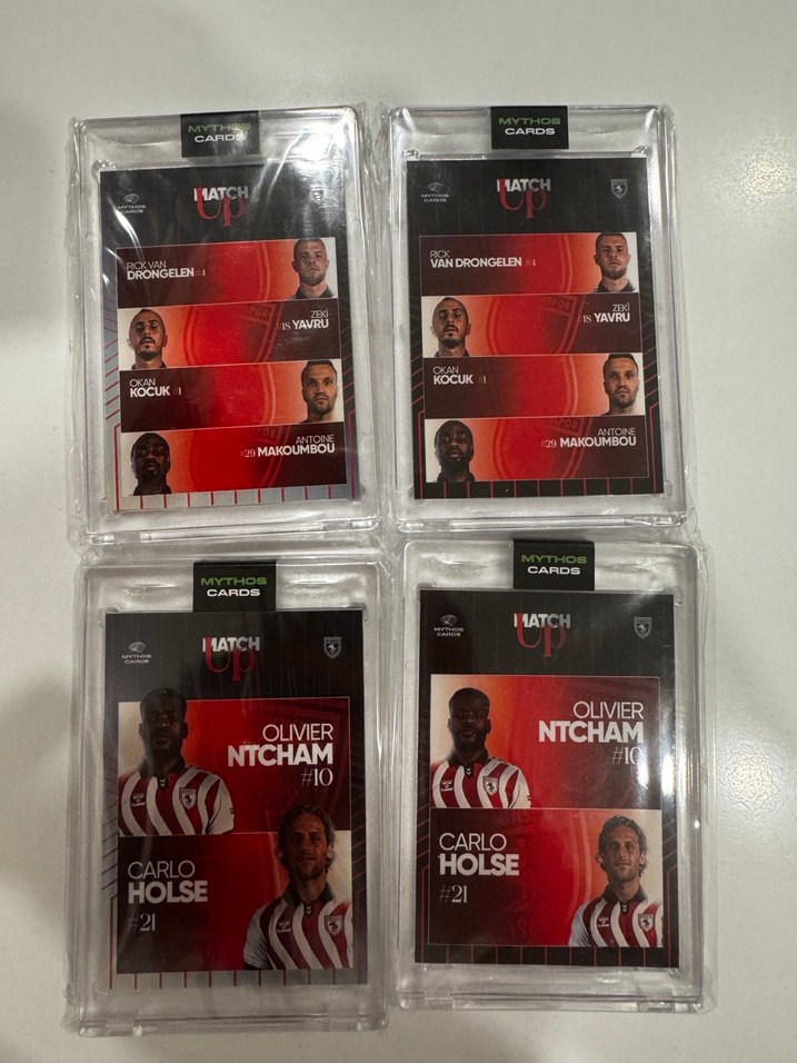 Koyu kırmızı renkte, Olivier Ntcham ve Carlo Holse isimlerini taşıyan minimalist erkek rozetleri. Karşı kültür tarzında, trend ve avangart tasarım.