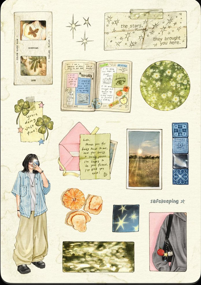 Sanatsal Günlük Sayfaları ve Çizimler sticker seti