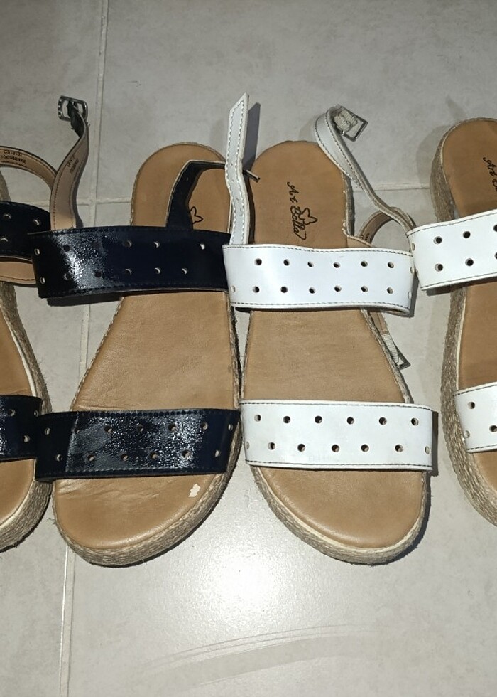 Kadın sandalet ikiside aynı model 40numara biri siyah biri beyaz isterseniz ikisinide alabilirsiniz ya da tekli alabilirsiniz ben acele fotosunu çektim ama size kargolanmadan önce temizlenip gönderilecektir