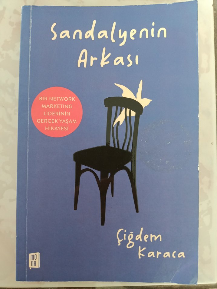 Bir network marketing liderinin gerçek yaşam hikayesini anlatan roman. Mavi kapakta siyah sandalye ve küçük bir kuş figürü yer alıyor.