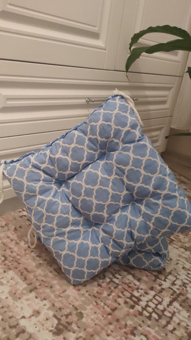 Mavi ve gri bağlamalı desenli, köşe bağları bulunan yumuşak, dolgulu yastık minderi. Oturma alanlarına konfor ve şıklık katar. ️ 35×35 ölçülerinde. 6 adet fiyatıdır