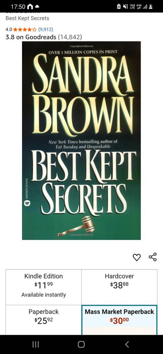 Sandra Brown'un New York Times çok satanlar listesinde yer alan dedektif ve suç romanı kitabı 'Best Kept Secrets' sert kapaklı olarak sunulmaktadır.