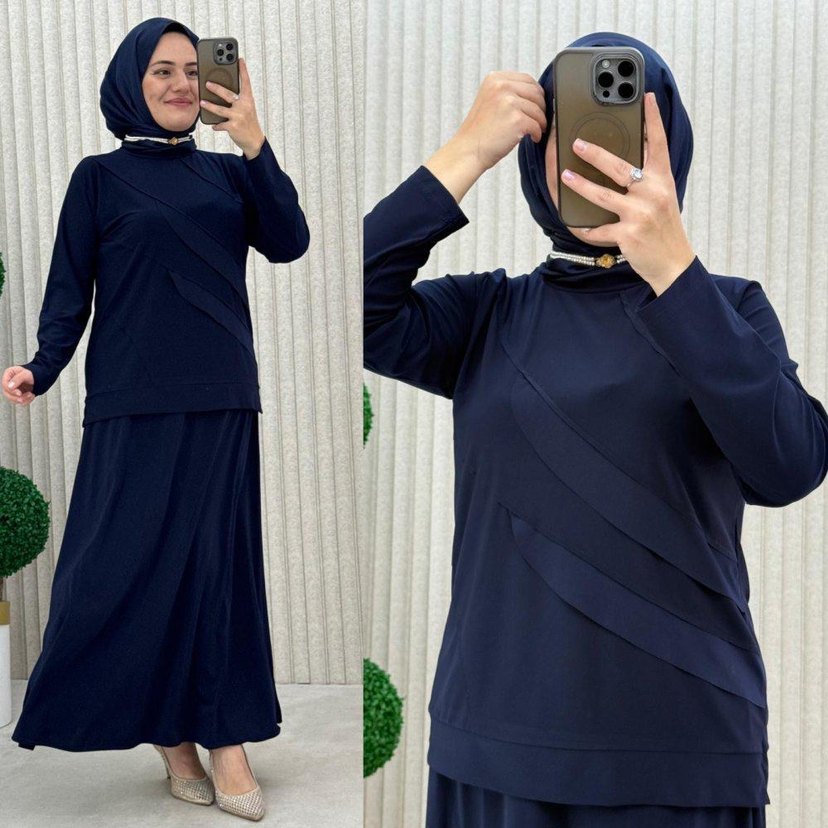 Lacivert renk, yüksek yakalı ve uzun kollu kadın takımı. Drapeli detaylara sahip, regular fit ve uzun boylu, sentetik kumaştan üretilmiştir. Günlük iş kullanımı için uygundur.