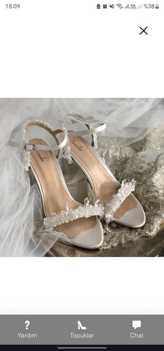1 gün kullanildi. 7 cm standart topuk ve ekru renk. Internet sitesinden de bakabilirsiniz. Gorundugu gibi cok iyi durumda. Kaliteli el isciligi ile deri ve saten malzemelerden yapilma. Sadece sag tekinde bantinin kenarindaki boncukta cok az bir dökülme var. Kendiniz tamir edebilir ya da yaptirabilirsiniz. Fiyatini uygun tutuyorum. Alana hayirli olsun Klasik zarafet ve bohem tarzı ile düğünler için uygun