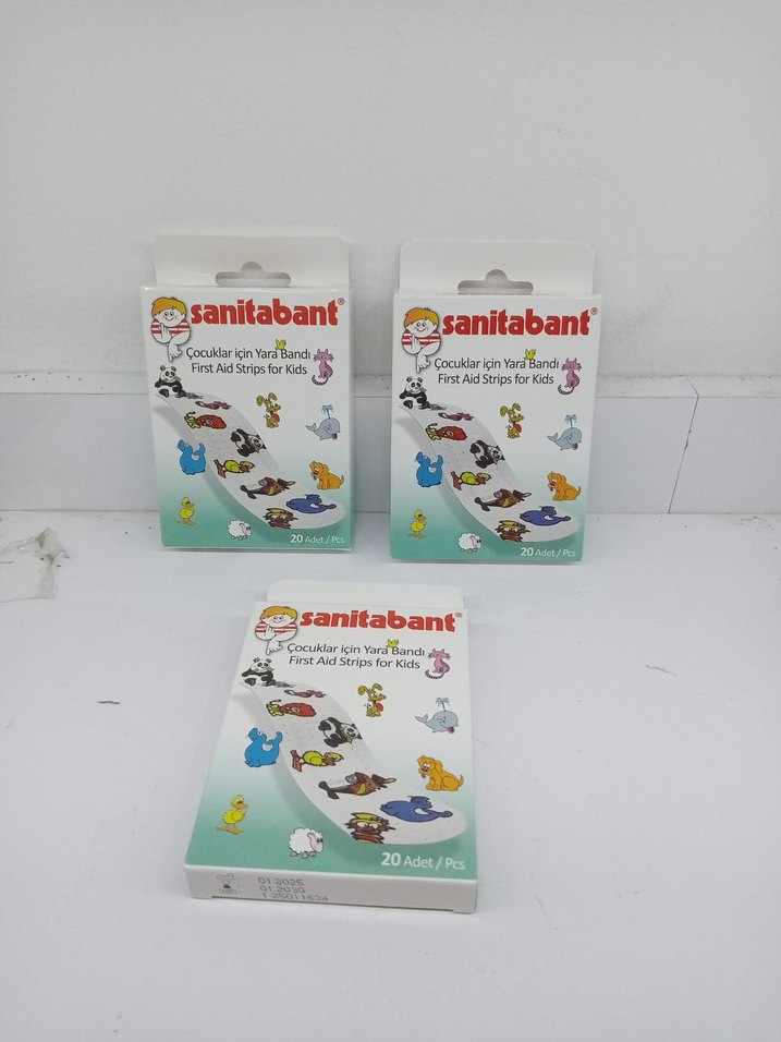 Sanitabant çocuklar için renkli ve eğlenceli desenlere sahip 20 adet ilk yardım bandı içerir. Küçük kesikler için uygundur.