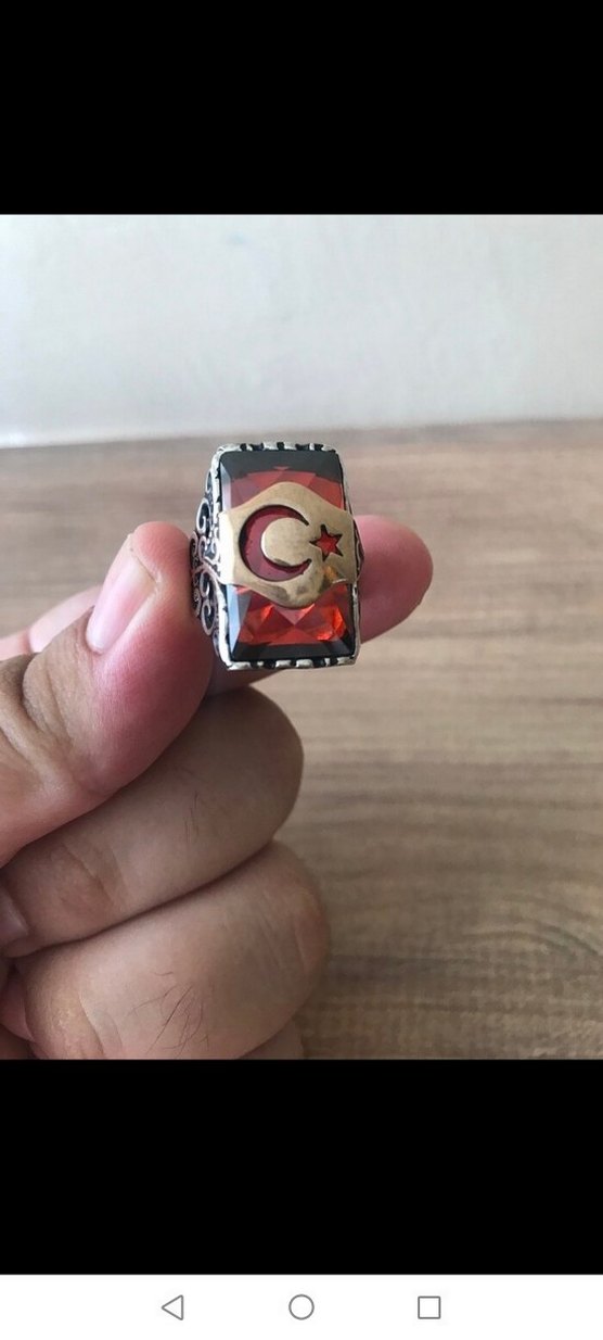 Türk Bayrağımız motifli 925 ayar gümüş yüzük 17gr Ölçü :22