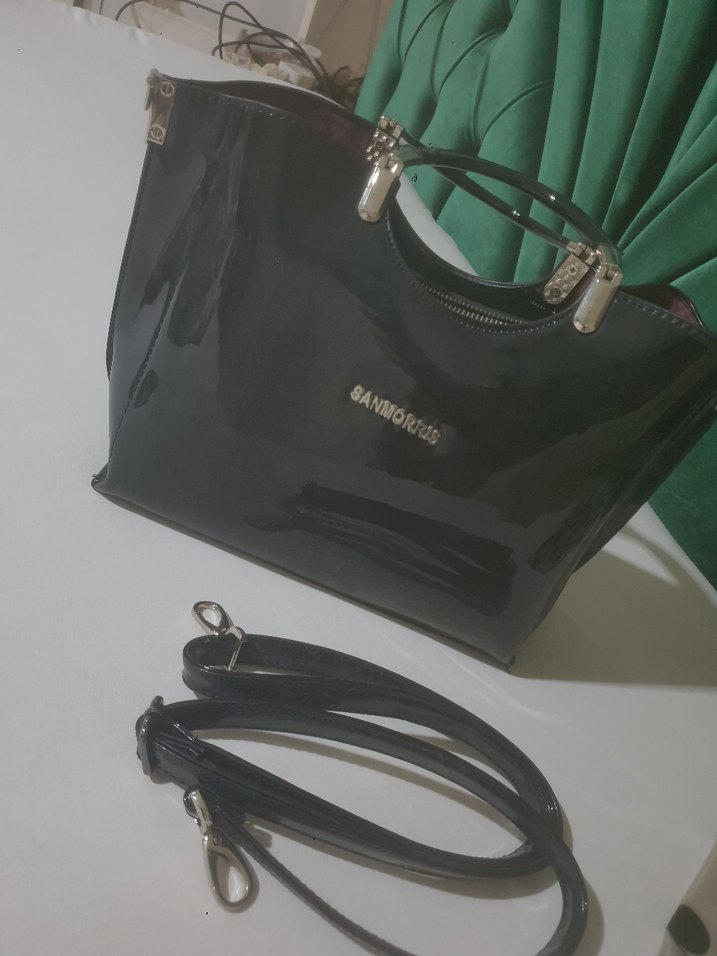 Sanmorrs markalı siyah deri tokalı kadın çanta, desen içermeyen şık yüzeyiyle günlük kullanım için uygundur.