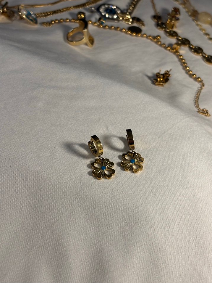 Şans ve Nazar Altın Renkli Boncuklu Çiçek Küpeler