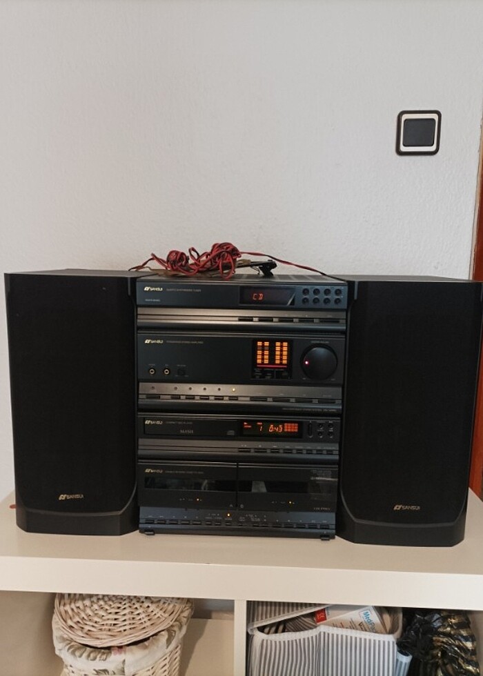 Sansui müzik seti orijinal japon marka iki katlı radyo CD çift kaset çalar kumandası da mevcut sadece sol taraftaki kaset çaların kapağında sorun var Kıbrıs tan alınmıştı